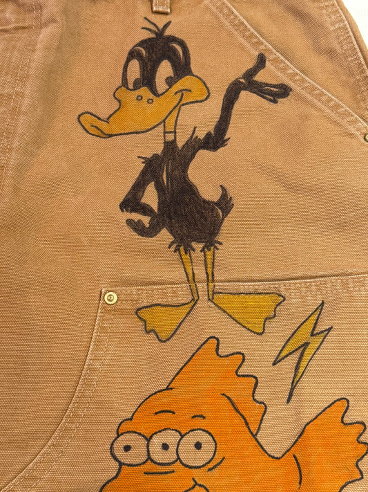 2.Daffy Duck Pants- 40x29- Vintage one of a kind hand drawn double knee Cartoon Carhartt pants