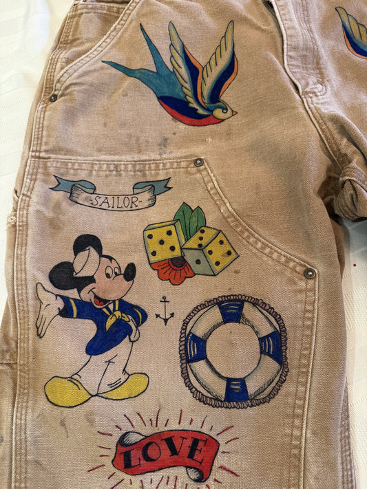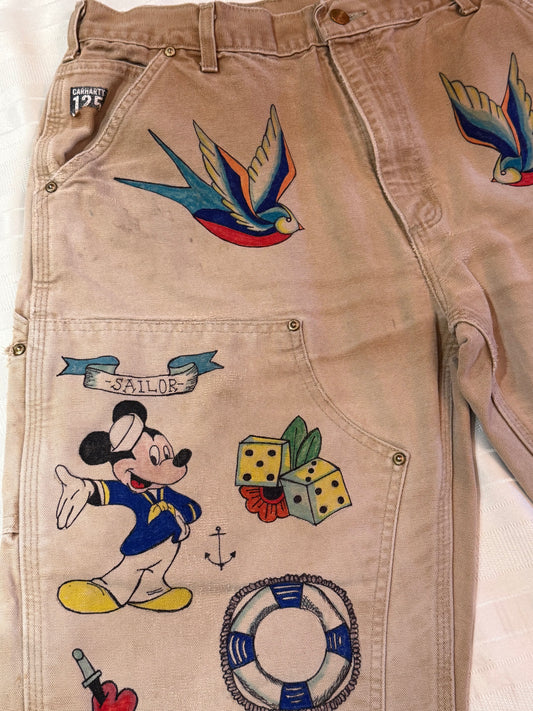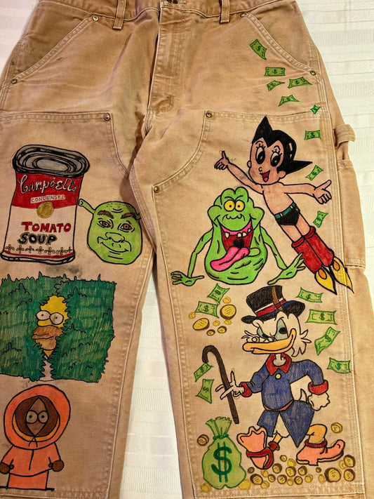 Vintage one of a kind hand-drawn cartoon double knee Carhartt pants