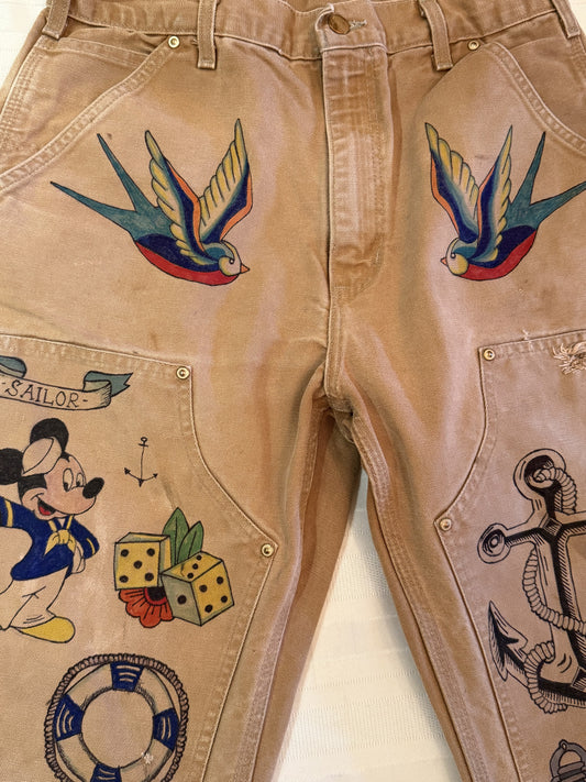 4. Tattoo Carhartt Pants 34x30- Vintage hand drawn double knee pants