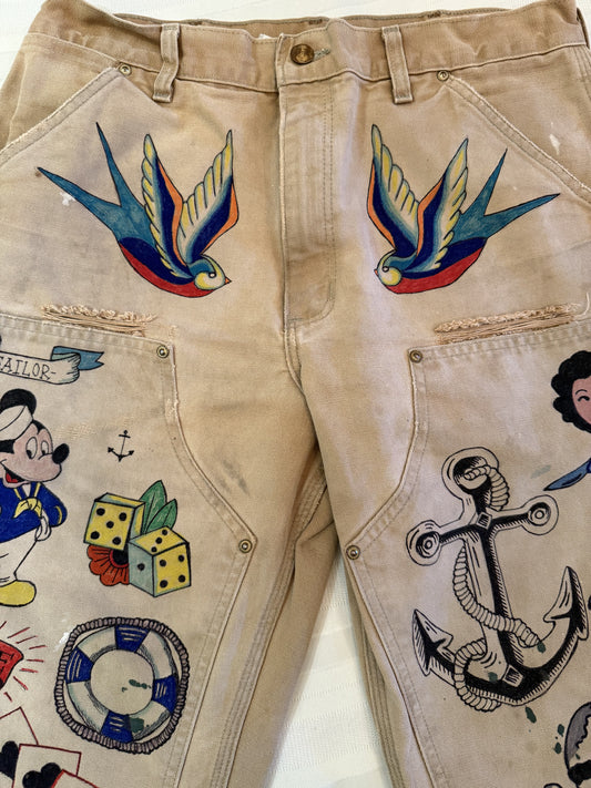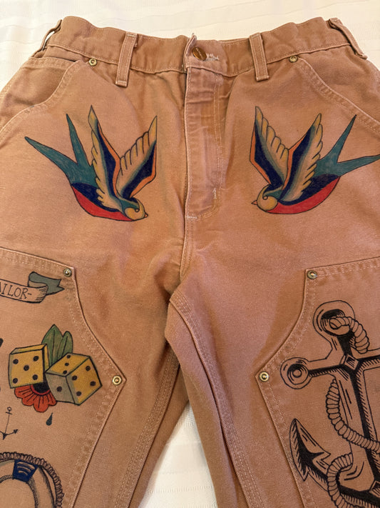 7. Tattoo Carhartt Pants- 30x31- Vintage hand drawn double knee pants